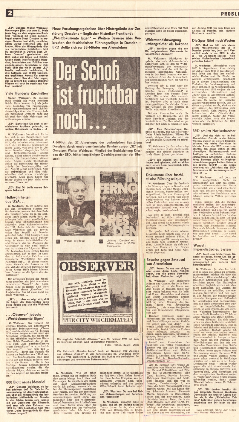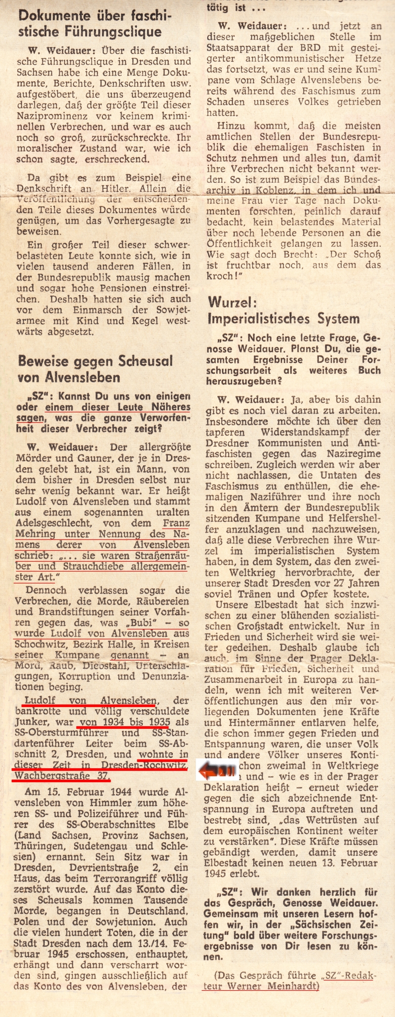 Weidauer-Artikel von 1972 Weidauer redet hier von Dresden-Rochwitz damit ist Dresden-Oberloschwitz gemeint. und, hier wird von der roten Blase so ziemlich jeder verfügbare Kübel Dreck über den Bubi ausgeschüttet. |